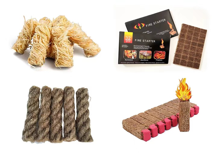 الشواء، اللحوم المشوية، الطبخ باستخدام الفحم، إشعال النار في المدافئ، إشعال أفران الحطب، والتخييم في الهواء الطلق، نيران المخيم، وجميع أنواع أماكن استخدام مواد الإشعال.